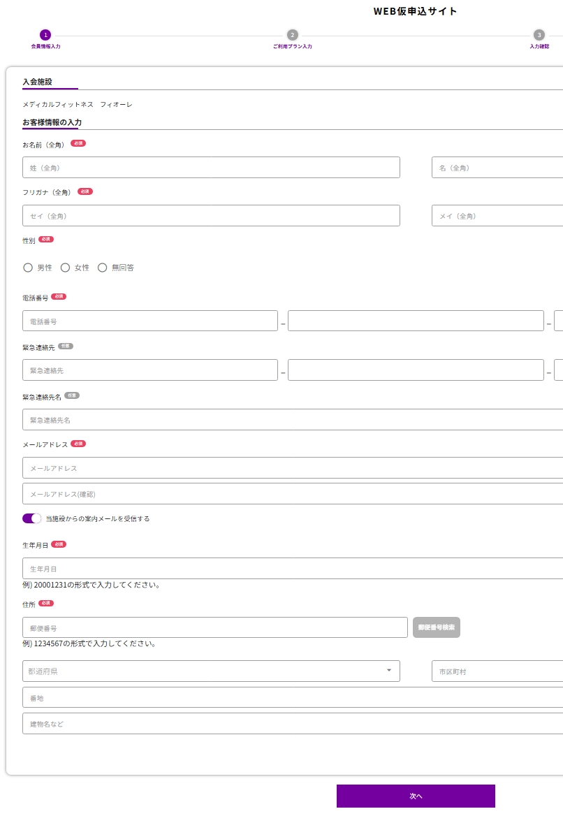 ※web予約入会申し込みのご登録にはメールアドレスが必要となります。