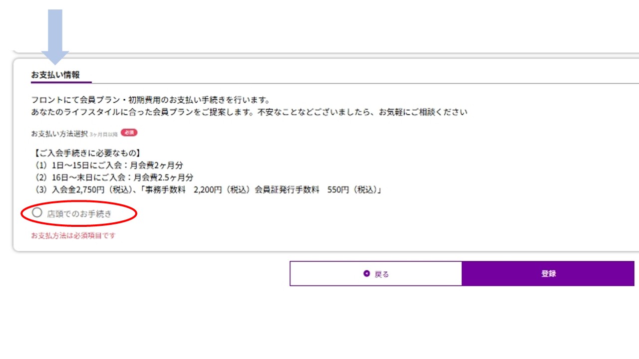 手続きの日にちはweb予約入会申し込みのご登録完了後に届くメールのURLからご予約ください。